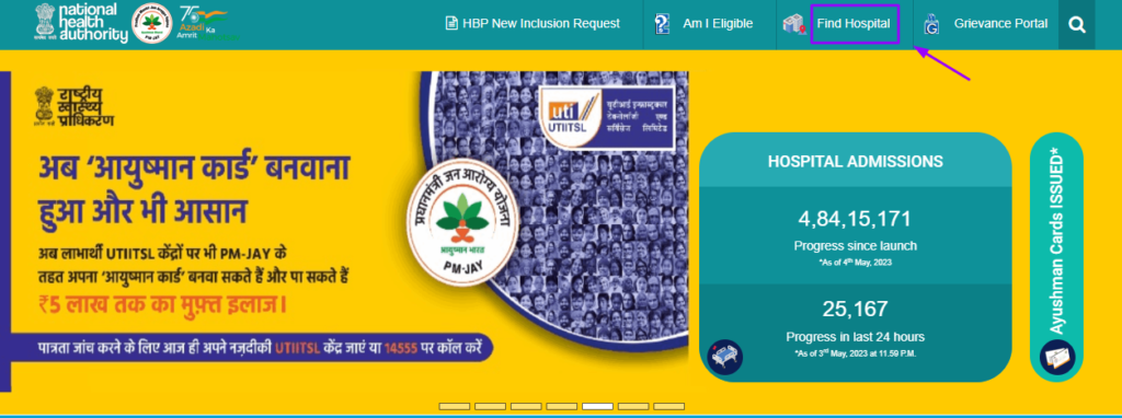 ● अब आपको फाइंड हॉस्पिटल के Link पर क्लिक करना होगा
