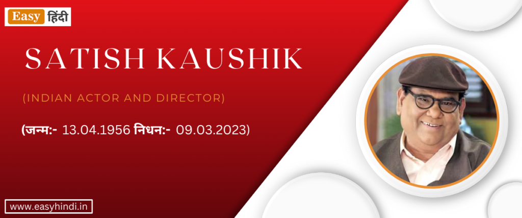 सतीश कौशिक भारतीय सिनेमा के मशहूर निर्माता निर्देशक और अभिनेता थे। मिस्टर इंडिया फिल्म में उनके द्वारा निभाए गए कैलेंडर का किरदार काफी मशहूर हुआ था। 09 March 2023 को दिल का दौरा पड़ने से 72 साल की उम्र में सतीश कौशिक देहांत हो गया। आज भले ही सतीश कौशिक इस दुनिया में नहीं है लेकिन सदैव हमारे दिल में जीवित रहेंगे। सतीश कौशिक का जन्म अगस्त 1951 को दिल्ली में हुआ था। उन्होंने अपने करियर की शुरुआत 1970 के दशक में टेलीविजन से किया था | प्रमुख तौर पर परवरिश कदम-कदम पर हम पांच और महाभारत जैसे सीरियल सम्मिलित हैं 1980 के दशक में फिल्मों में सतीश कौशिक को कम करने का ऑफर मिलने लगा उन्होंने कई सफल फिल्मों में काम किया है। जैसे राम लखन’ स्वर्ग’ आशिकी’ मिस्टर इंडिया जुदाई ‘परदेस’ दिल चाहता है घरवाली बाहरवाली हम आपके दिल में रहते हैं, इत्यादि फिल्में |