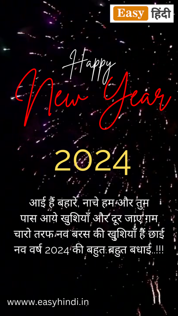 2024 साल आने में केवल कुछ दिन ही बचे हैं ऐसे में Happy New Year Shayari व्हाट्सएप फेसबुक या सोशल मीडिया पर शेयर और अपने दोस्तों को भेज भी सकते हैं नीचे उसका विवरण आपको दे रहे हैं:-