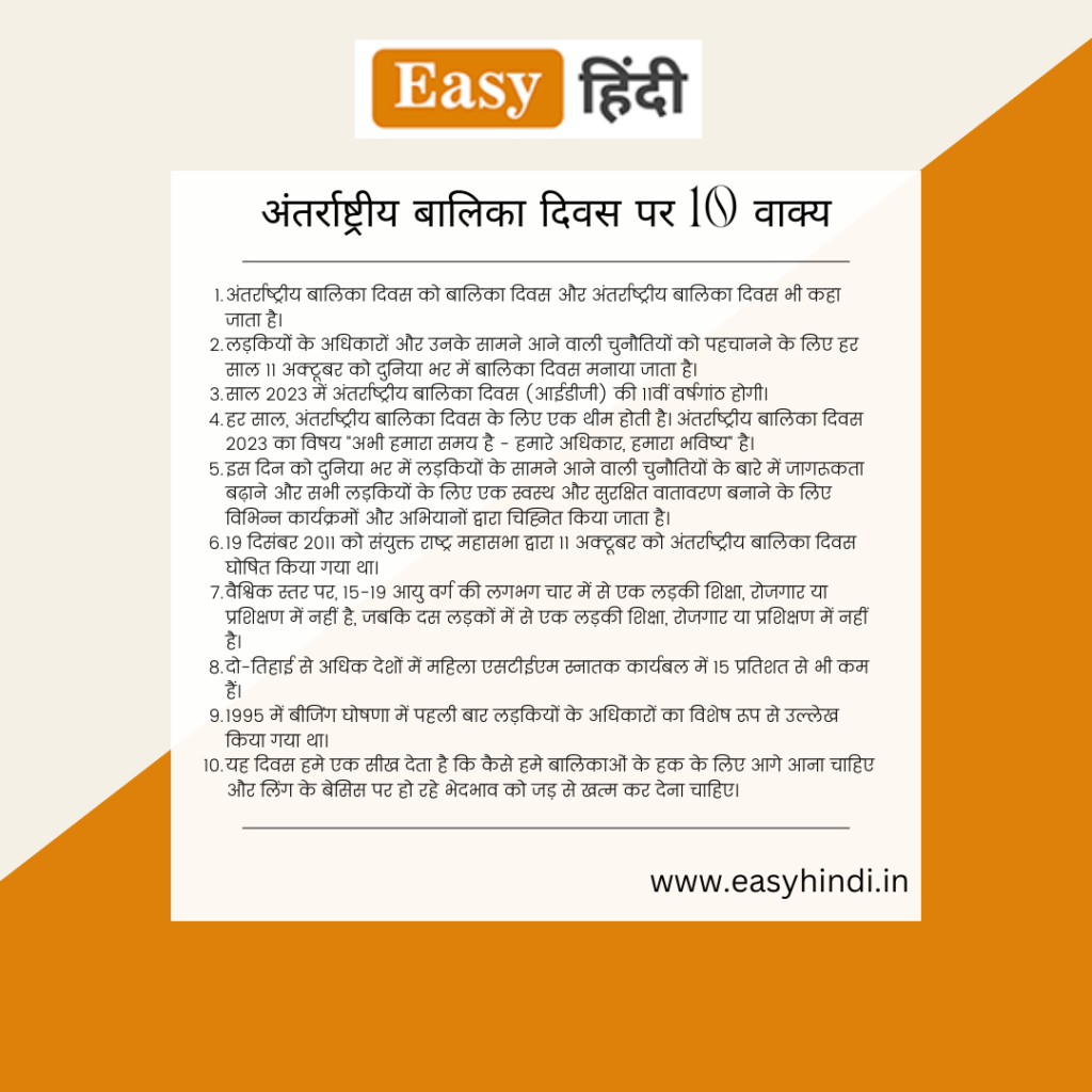 अंतर्राष्ट्रीय बालिका दिवस पर 10 वाक्य | 10 Lines on International Day of Girl Child