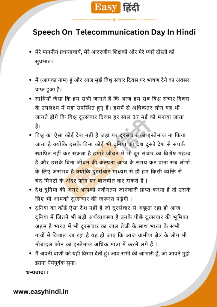 विश्व दूरसंचार दिवस पर भाषण | Speech On Telecommunication Day In Hindi