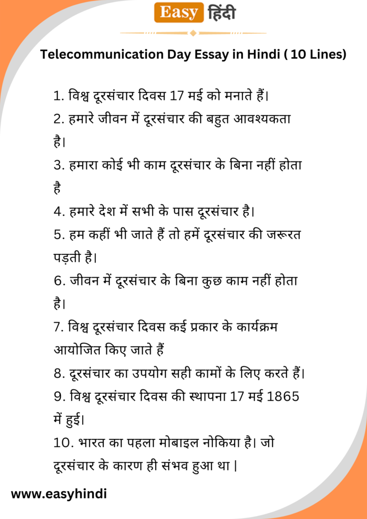 Telecommunication Day Essay in Hindi (10 Lines)