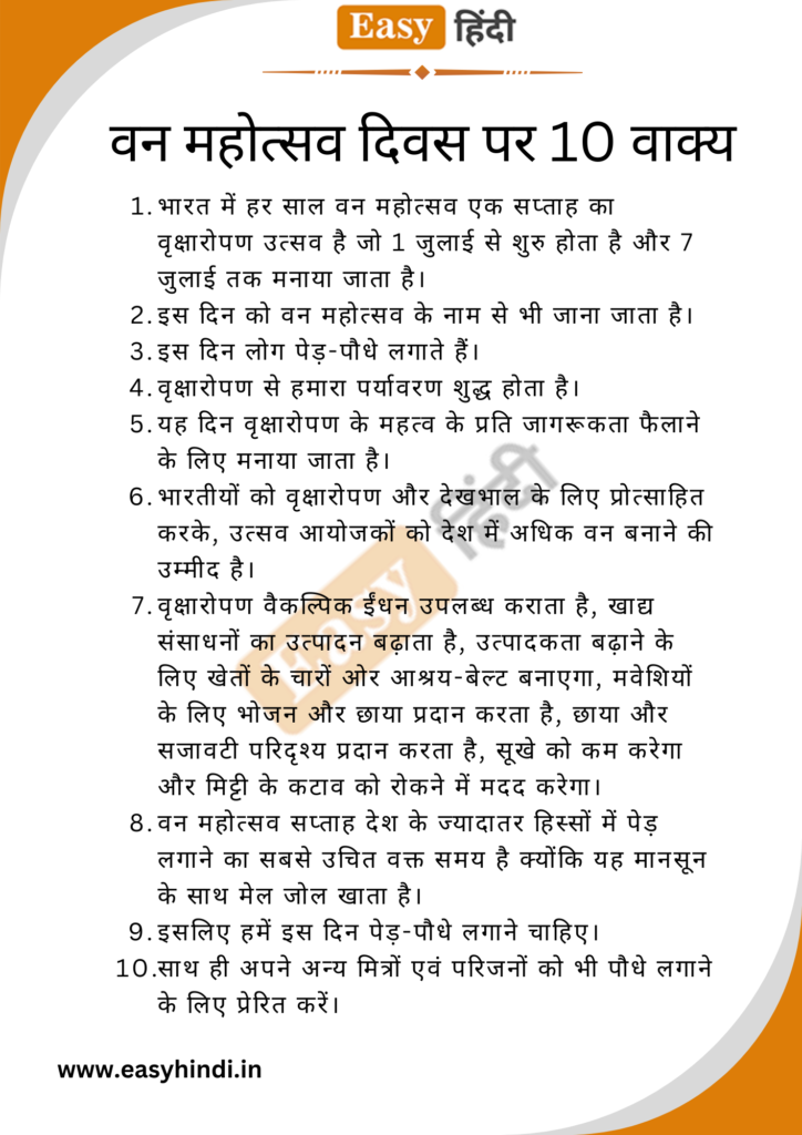 वन महोत्सव दिवस पर 10 वाक्य | 10 Lines On Van Mahotsav Diwas