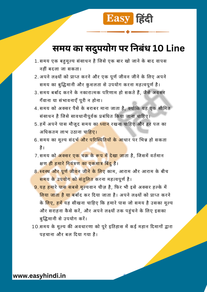 समय का सदुपयोग पर निबंध 10 लाइन | Samay ka Sadupyog Par Nibandh in Hindi