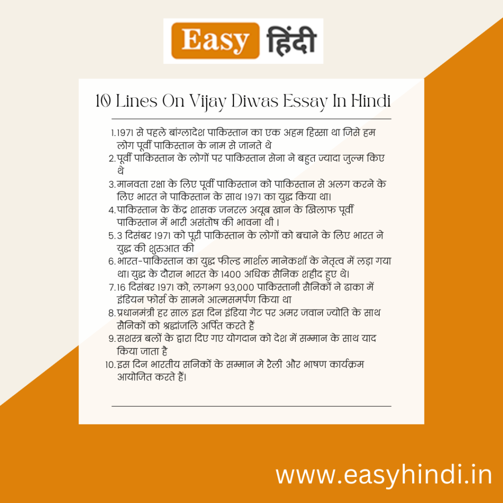 10 Lines On Vijay Diwas Essay in Hindi