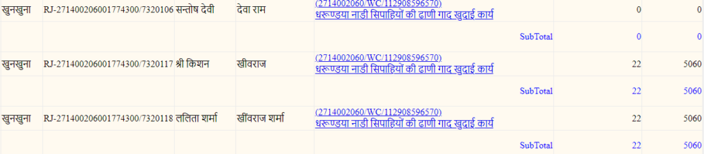 इस सूची में जॉब कार्ड संख्या तथा अपना नाम देख सकते हैं।
