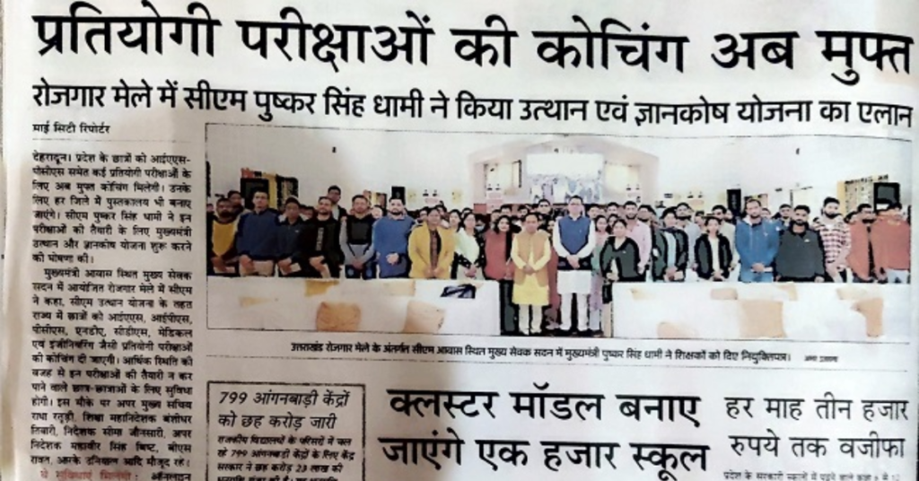 Ans : मुख्यमंत्री पुष्कर सिंह धामी द्वारा राज्य में उत्तराखंड मुख्यमंत्री उत्थान योजना की शुरुआत की गई है इसके माध्यम से और मेधावी छात्रों को निशुल्क कोचिंग सुविधा उपलब्ध करवाई जाएगी